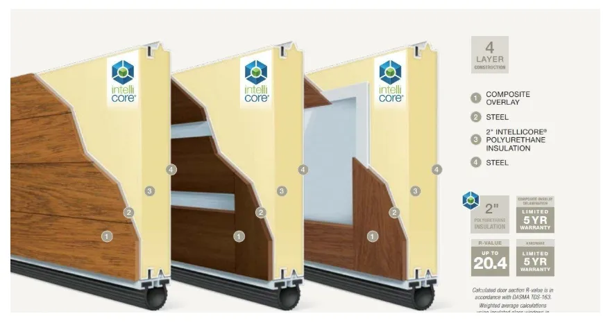 Full-View design: Faux-wood doors with Intellicore® polyurethane insulation. 6.3 R-value.
