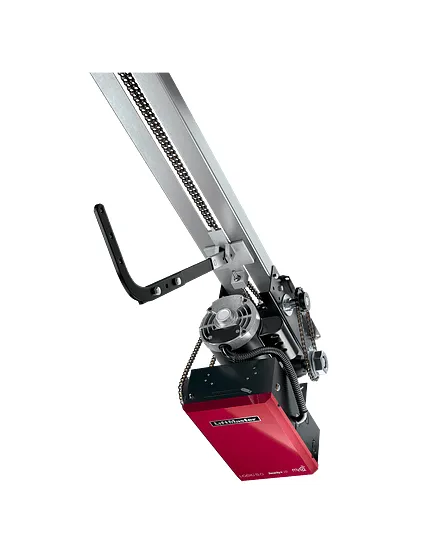 Suspends from the ceiling. Directly attaches to drive and controls the door.