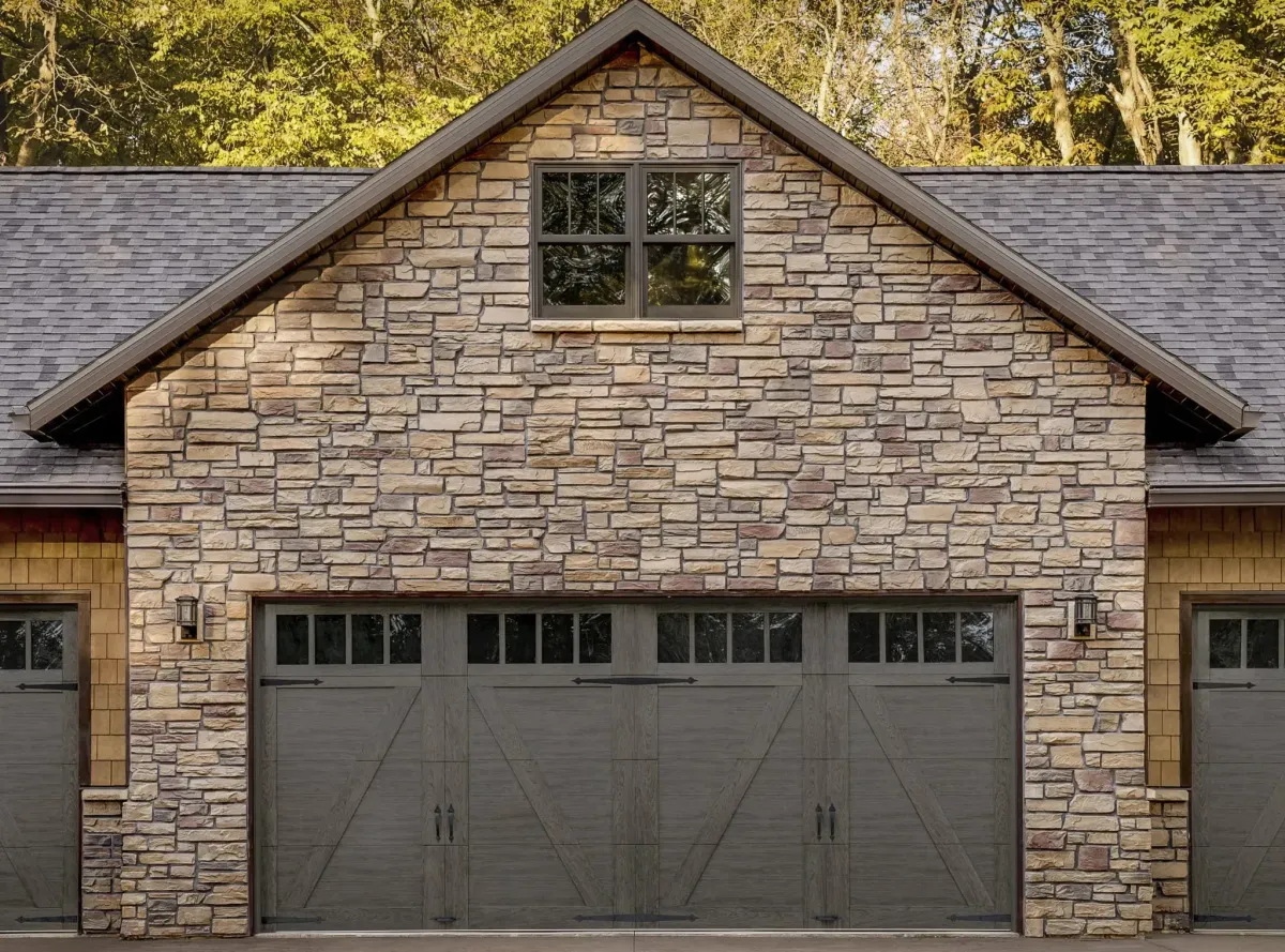 Real wood garage doors are beautiful and full of charm, but they need more maintenance, paint, and upkeep to prevent warping. Wood composite garage doors, on the other hand, are built with a steel base or fiberglass and covered with a composite overlay or faux wood overlay. They look like natural wood without the hefty price tag or the maintenance. Homeowners choose composite garage doors when they want the wood look garage door style but also want durability, easy maintenance, and long-term value.